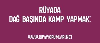 Rüyada dağ başında kamp yapmak, rüya sahibinin kendini doğaya ve basit yaşama çekme arzusunu simgeler. Bu rüya, kişinin modern dünyanın karmaşasından uzaklaşarak iç huzuru bulma isteğini ifade eder.