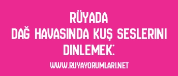 Rüyada dağ havasında kuş seslerini dinlemek, rüya sahibinin hayatında içsel huzur ve dinginlik arayışını simgeler. Bu rüya, kişinin doğanın sesleriyle kendini rahatlatma ve zihinsel olarak huzur bulma isteğini ifade eder.