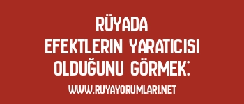 Rüyada efektlerin yaratıcısı olduğunu görmek, rüya sahibinin hayatında yaratıcılık ve inovasyon gücünü kullanma arzusunu simgeler. Bu rüya, kişinin kendini ifade etme ve kendi dünyasını inşa etme isteğini gösterir. Yaratıcı olmak, aynı zamanda rüya sahibinin hayatında yenilikçi ve özgün bir yaklaşım geliştirme arzusunu ifade eder.