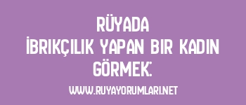 Bu rüya, rüya sahibinin hayatında şefkatli ve yardımsever bir kadın figürünün önemli bir yer tutacağına işaret eder. İbrikçilik yapan kadın, annelik, merhamet ve şefkat gibi kavramları simgeler.