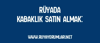 Rüya sahibinin yeni bir iş veya yatırım fırsatı elde edeceğine, bu fırsatın kazançlı olacağına delalet eder. Kabaklık satın almak, maddi anlamda güçlenmenin ve bereketin simgesidir.