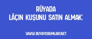 Rüya sahibinin hayatında yeni bir başlangıç yapacağına ve bu süreçte güçlü bir destek alacağına işaret eder. Lâçin kuşunu satın almak, özgürlük ve güç kazanmayı simgeler.