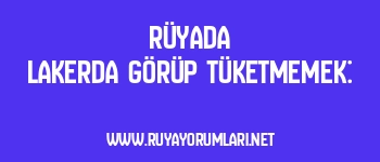 Rüyada Lake İle İlgili Bir Eşyayı Görmek: