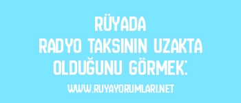 Rüya sahibinin çözüm ya da yardım beklediği bir konuda henüz zamanının gelmediğine işaret eder. Bu rüya, kişinin sabırlı olması ve beklediği gelişmelerin yakında gerçekleşeceğine inanması gerektiğini simgeler. İmam Nablusi’ye göre, radyo taksinin uzakta olması, kişinin ihtiyaç duyduğu yardıma yakında kavuşacağına delalet eder.