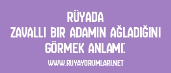Rüyada zavallı bir adamın ağladığını görmek, rüya sahibinin hayatında zor durumda olan birine yardım etme gerekliliğini simgeler. Bu rüya, kişinin çevresindeki insanlara karşı daha duyarlı olması gerektiğini ve ihtiyaç sahibi kimselere destek olması gerektiğini gösterir. Aynı zamanda, bu rüya, rüya sahibinin içsel olarak daha şefkatli ve anlayışlı bir yaklaşım geliştireceğine işaret eder.