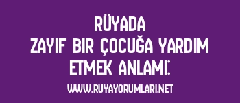 Rüyada zayıf bir çocuğa yardım etmek, rüya sahibinin içsel şefkat duygularının güçlü olduğunu ve çevresindeki savunmasız insanlara karşı duyarlılığını artırması gerektiğini simgeler. Bu rüya, kişinin hayatında başkalarına yardım etme isteği ve bu isteğin gerçekleşeceği anlamına gelir. Aynı zamanda, bu rüya, rüya sahibinin hayatında daha fazla sevgi ve anlayış geliştireceğini simgeler.